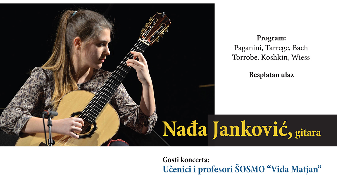 Kotorska koncertna sezona, povodom Dana škole ŠOSMO"Vida Matjan", organizuje Koncert NAĐE JANKOVIĆ-gitara, u utorak 15.marta u 19h u Koncertnoj dvorani-Crkva Sv.Duha.